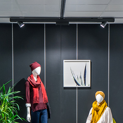 Das brillante Licht des Lightfall-Systems arbeitet fokusfrei und macht so Wechsel des Visual Merchandising ohne Einbußen der Beleuchtungsqualität spielend leicht und schnell mit. Der modular aufgebaute Lightfall passt sich mit Montagehöhen von 2,5 bis 4 Metern und Längen zwischen 1,8 und 3,5 Metern an jede gängige Schaufenstergröße an und bietet einfache Aufnahmemöglichkeiten für Hänge-, Decken- und Schienenleuchten. Lightfall ist in Varianten für Schaufenster mit und ohne Rückwand erhältlich.