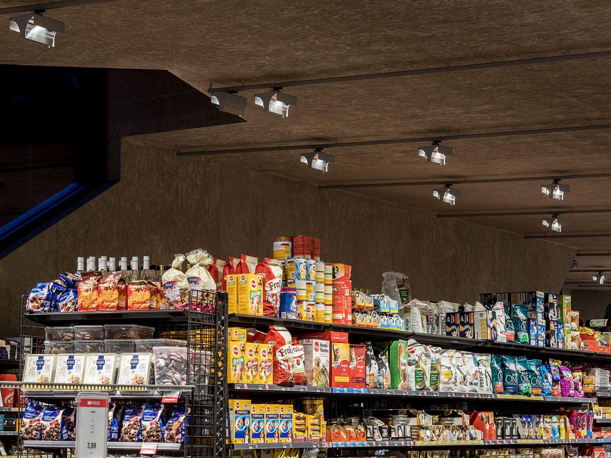Zielgerichtet verbindet das Lichtkonzept die Unterschiedlichkeiten des Raums und schafft eine inspirierende Einkaufsatmosphäre. Gleichzeitig lädt die Beleuchtung im Bistro-Bereich zum Verweilen ein.