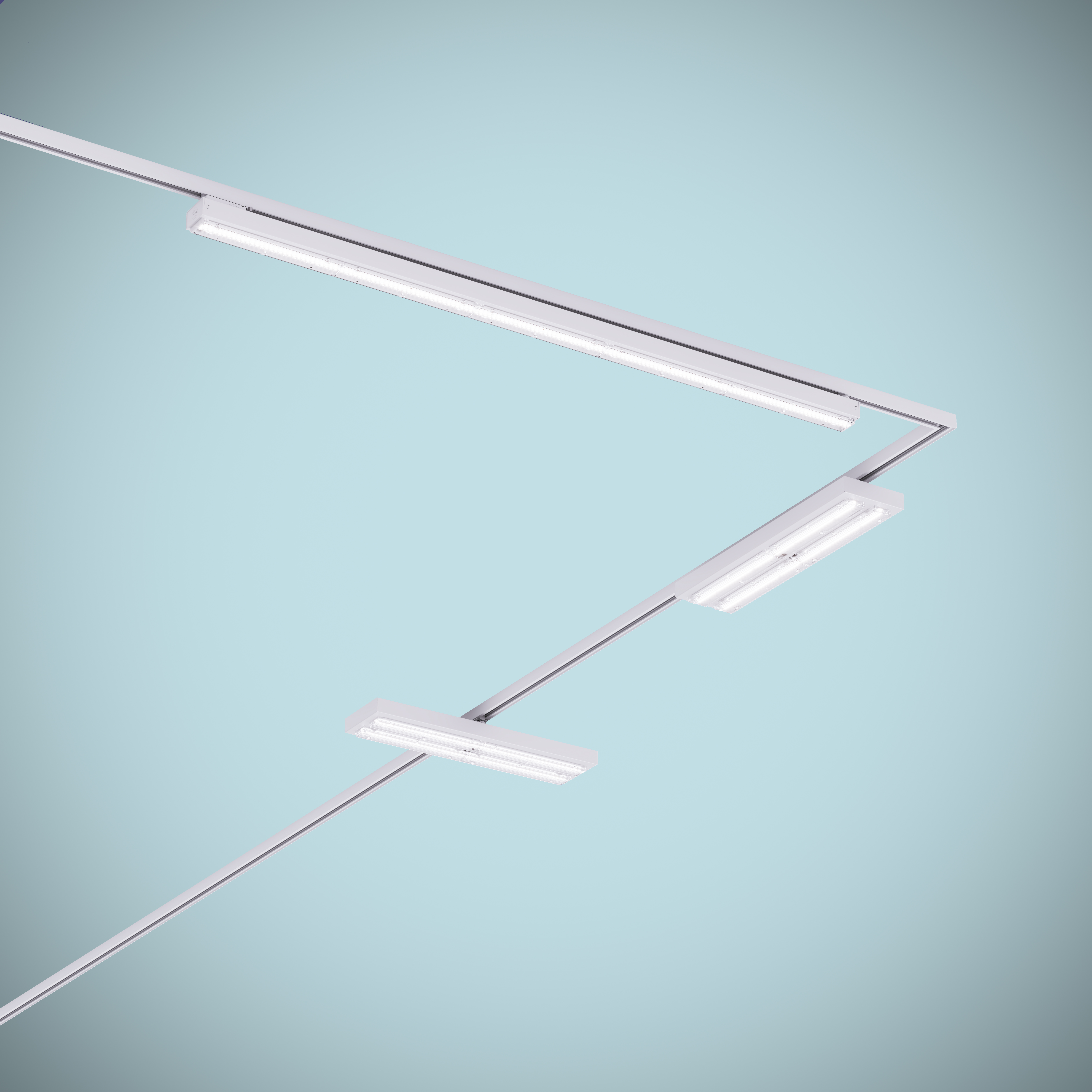 The track-mounted luminaires can be arranged variably at intervals of up to three metres. The conductor rail system does not need to be fitted throughout. This allows accentuating spotlights, loudspeakers and other components to be easily integrated into the tracks. Thanks to the reduced number of luminaires, the system saves a significant amount of energy and material, thus contributing to efficient and sustainable economic management.