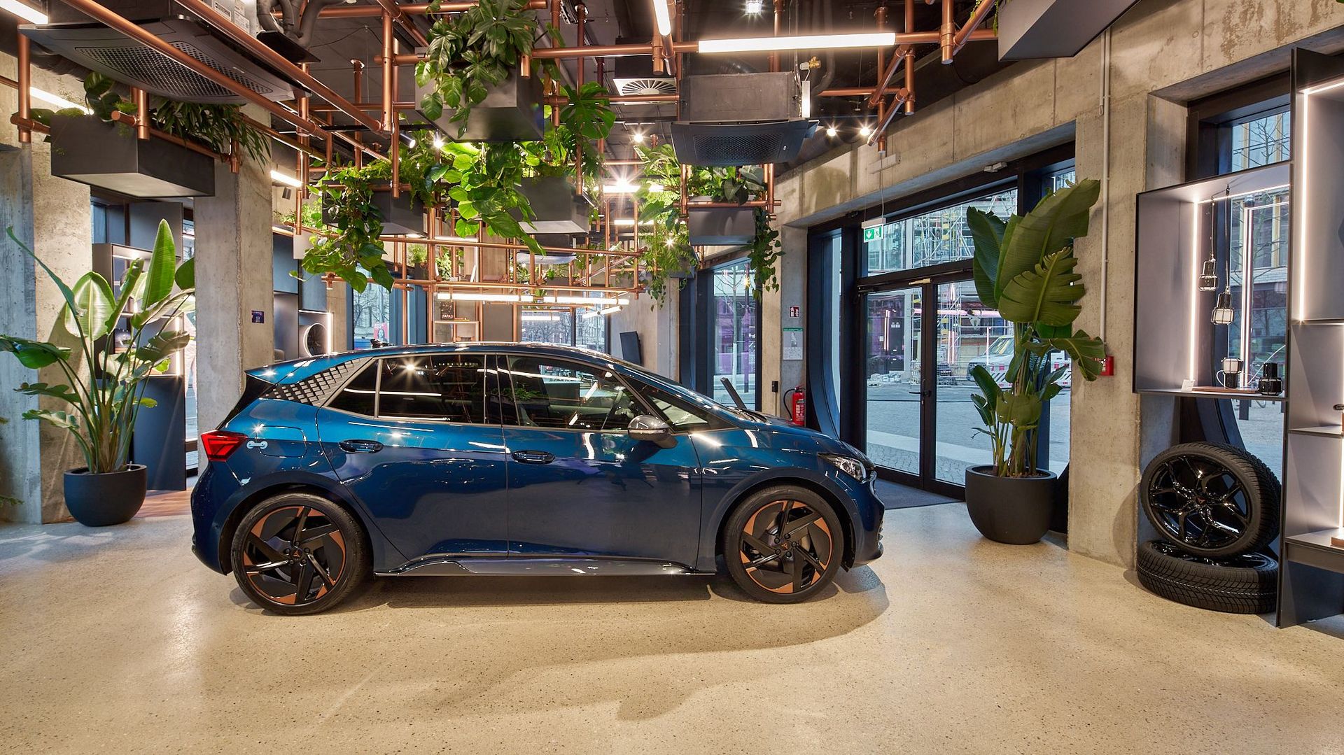 In the vibrant center of Berlin, within the new urban quarter "Am Tacheles," a unique flagship store has recently opened: the CUPRA City Garage. The building's exterior, with its semicircular windows set into the facade, captures the attention of both residents and visitors to Berlin-Mitte. Inside, the lighting arrangement, designed by the experts at Ansorg, promises an exclusive shopping experience, visible from the courtyards of the quarter and Oranienburger Straße, within a stylishly furnished CUPRA City Garage.