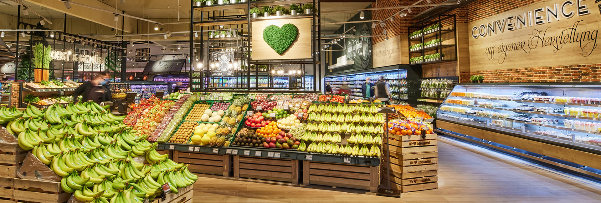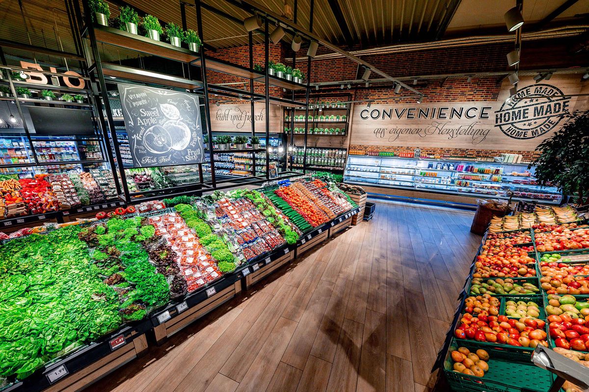 The Tonscheidt family’s extensive refurbishment of the E-Center Angerbogen supermarket has transformed the retail space into a distinctive example of quality interior design. Not only has the supermarket’s new look received a vote of confidence in the form of higher visitor frequencies from customers in the southern Duisburg catchment area of Huckingen, but also from a food retail magazine jury when it named this supermarket Food Retail Outlet of the Year 2023 for the second time in 15 years. It would appear that the jury and the public are equally impressed by the EDEKA supermarket’s healthy nutrition focus and special promotions for customers, as well as the store design and lighting concept.