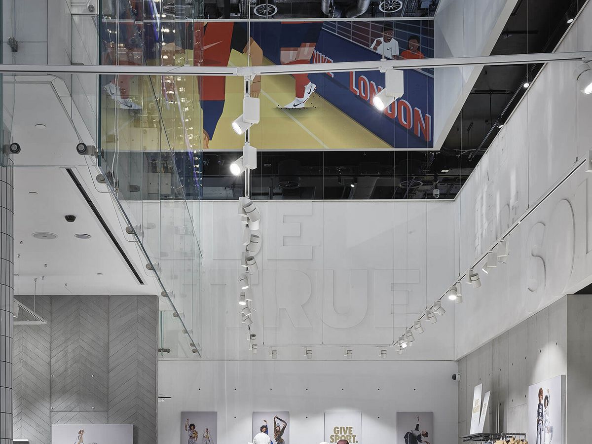 American fashion and lifestyle brand Nike’s store is 6,500 m² in size and located in London. It’s a real pleasure for shoppers who want to celebrate the Nike experience. Every collection is individually staged to offer plenty of space for tactile and visual experiences. Our lighting concept ideally complements the customer journey with understated highlights and accentuation. It directs the shoppers’ attention to the essentials – the Nike sportswear products!