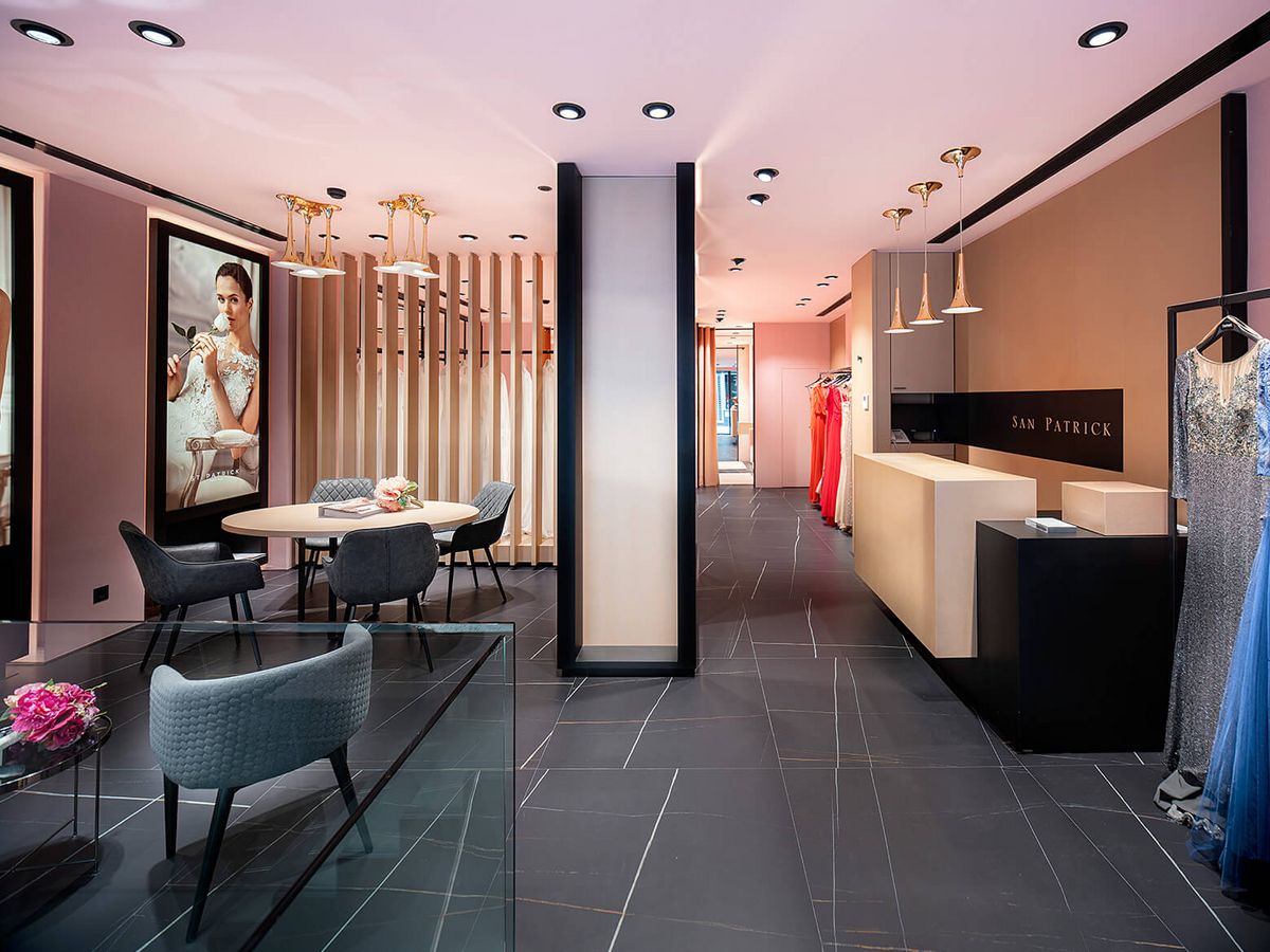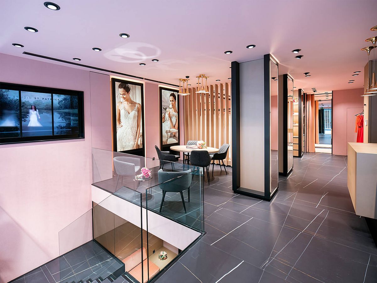 The @stpatrickbridal boutique in Granada not only stocks fabulous wedding dresses, it also boasts an exclusive interior design and a unique colour scheme. The latter is emphasised by our lighting concept, which also contributes to the boutique’s welcoming atmosphere.