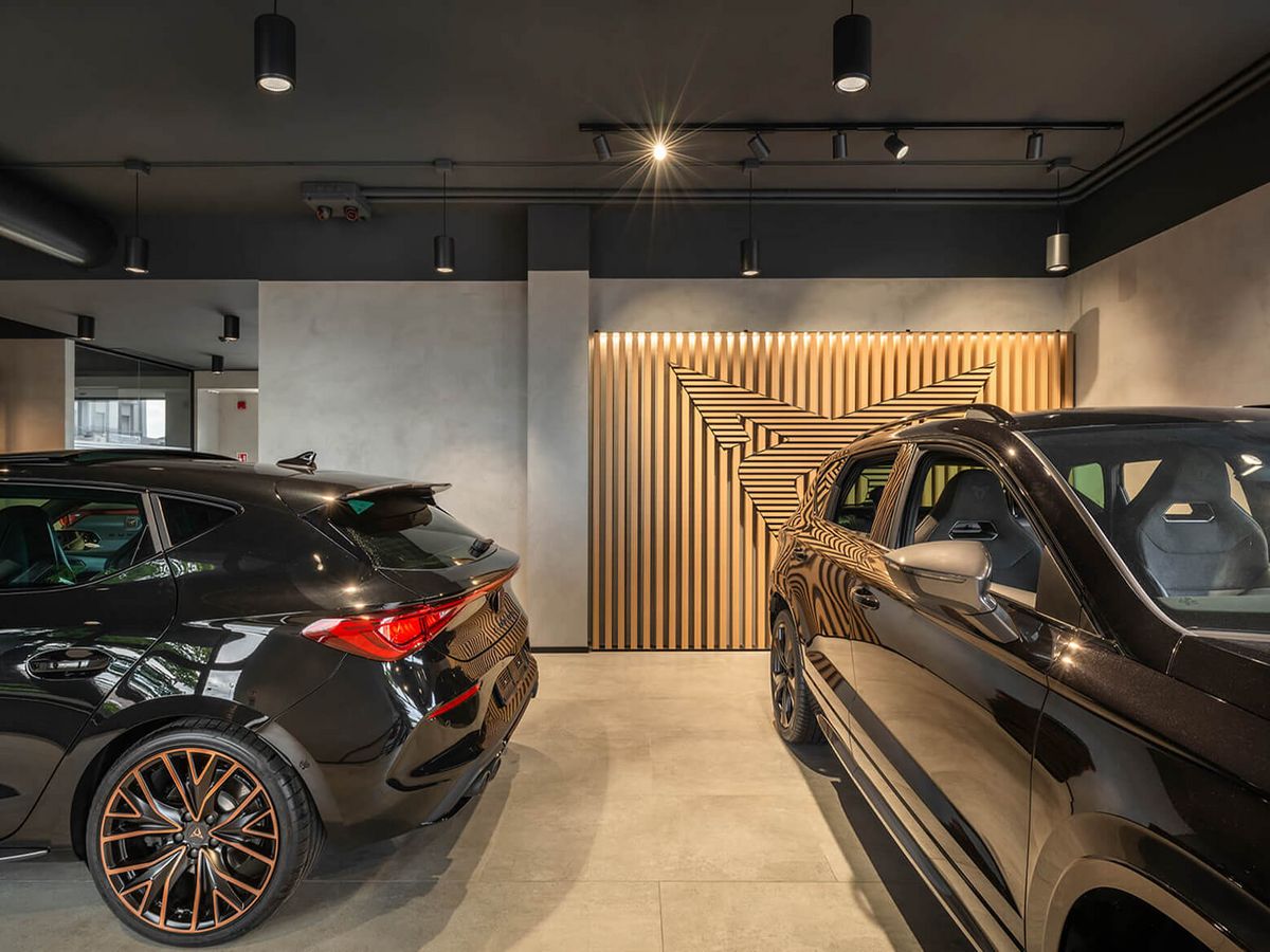 By using high-performance suspended luminaires Ansorg achieved an even distribution of light across the vehicles, and the understated, technical design of the Coray CLP suspended luminaire mirrors the elegance and power of the CUPRA brand. The sports cars’ dynamics are also emphasised by the cold light reflecting off the vehicle paintwork.