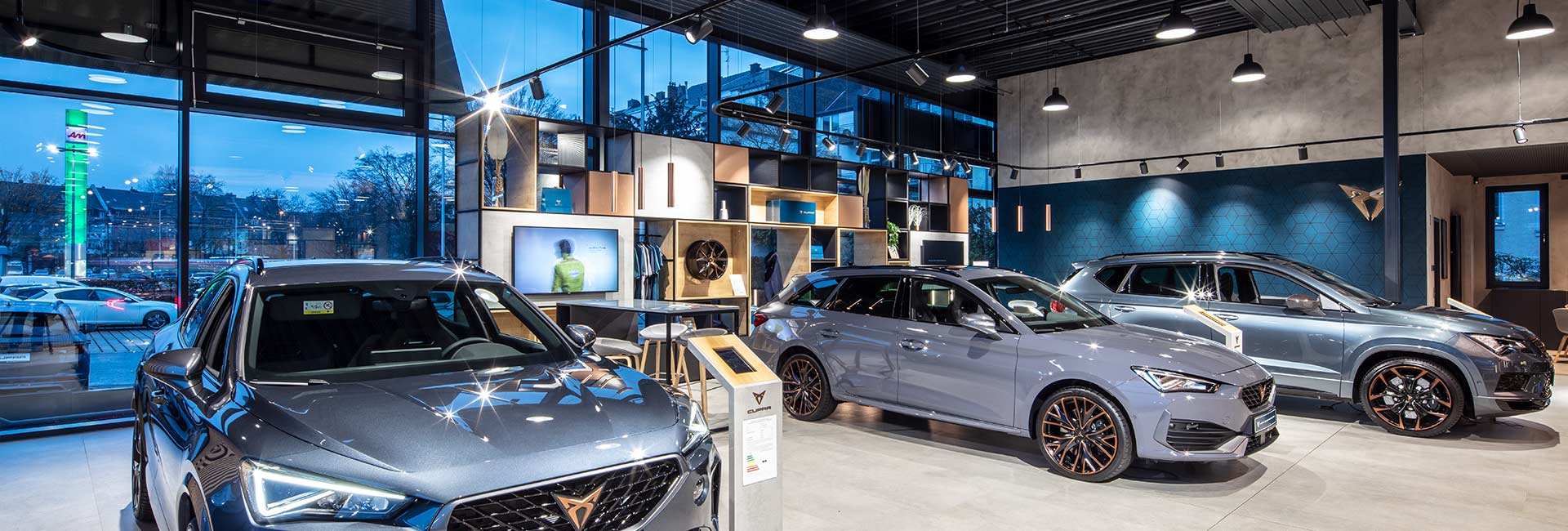 La visita a un concesionario de automóviles se está convirtiendo cada vez más en una experiencia para el cliente en la que la brillantez y la iluminación perfecta de cada zona desempeñan un papel decisivo. Los distintos elementos formales, las texturas y el diseño del automóvil se transforman en una experiencia sensorial.