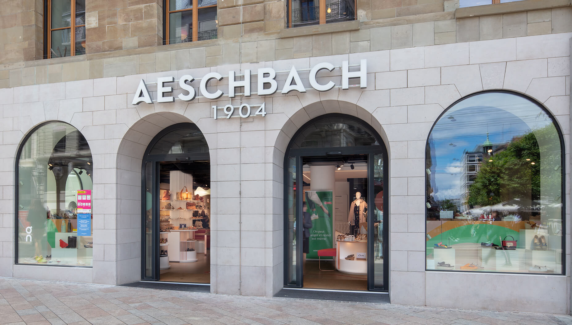 Après avoir franchi la porte du magasin phare de la marque Aeschbach, un univers d’achat haut en couleurs attend les clients : des chaussures et produits de maroquinerie de haute qualité, qui n’attendent plus qu’à être touchés et essayés. L’aménagement, l’architecture et les produits sont plongés dans une agréable lumière créant une harmonieuse atmosphère.