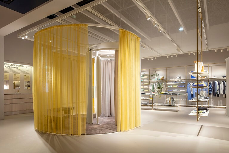 Die Umkleidekabine ist der intime Rückzugsort im Shoppingdschungel. Gestresst von medialer Bespielung, körperlicher Anstrengung und sozialer Kommunikation findet der Kunde hier Privatsphäre und Ruhe. Sie bedankt sich mit ihrem Service für den Besuch des Kunden und seiner Auswahl an Artikeln, die hier vertrauenswürdig begutachtet werden wollen. Um in der Konkurrenz zum Onlinehandel zu bestehen, darf sich die Umkleidekabine nicht nur auf ihre reine Funktion reduzieren, sondern muss ein Erlebnis werden.