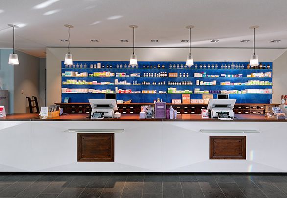 In der Ludgerus-Apotheke haben wir Ende 2023 ein Refurbishmentprojekt erfolgreich durchgeführt. Dabei konnten wir die vorhandenen Ansorg Lightstripe Systeme erhalten, indem wir lediglich die Leuchteinsätze austauschten. Insbesondere im Handverkaufs-Bereich, der eine zentrale Zone der Apotheke darstellt, setzten wir die Lizzy ein und konnten somit die bestehenden Lampenschirme beibehalten. Diese Maßnahme ermöglichte es uns, die Beleuchtung nahtlos in das Designkonzept der Apotheke zu integrieren, ohne aufwendige Umbauten vornehmen zu müssen. Durch das Refurbishment und die Umstellung auf moderne LED-Beleuchtung konnten wir nicht nur den Energieverbrauch reduzieren, sondern auch die Qualität der Beleuchtung erheblich verbessern.
