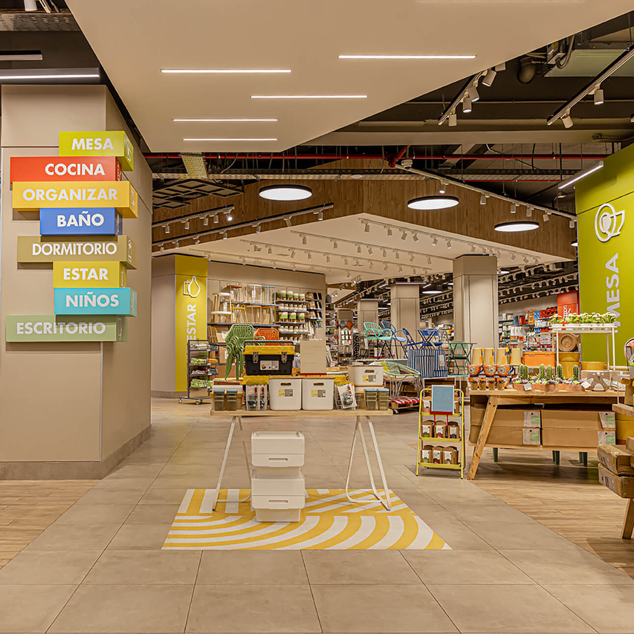 Die südamerikanische Einrichtungs- und Haushaltswarenkette Casaideas bringt mit der Eröffnung ihres Home Stores innovatives Design und Schönheit in die Häuser und Wohnungen der Metropolregion Santiago de Chile. Mit stilvollen Einrichtungsideen will der Retailer das Leben in den vier Wänden seiner Kundschaft einfacher, praktischer und stylischer machen. Die auf der 1.500 m² umfassenden Verkaufsfläche präsentierten Wohnaccessoires aller Couleur werden dabei von dem international agierenden Beleuchtungsspezialisten Ansorg in Szene gesetzt. Wie in allen anderen 80 Geschäften von Casaideas wird auch die Warenpräsentation in der Filiale am Plaza Oeste nach Räumen im Haus geordnet und damit die Shopping-Route für die Gäste logisch und leicht verständlich vorgegebenen. Über die Licht-Installation und -Ausrichtung an den zumeist offenen Decken führen die abgehängten Stromschienenstrahler die Kunden subtil durch den Showroom. Vereinzelte Deckenabhängungen, Säulen und eingezogene Wände verstärken dabei das individuelle Raumgefühl für die einzelnen Ausstellungsbereiche wie Wohnzimmer, Esszimmer oder Küche.